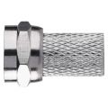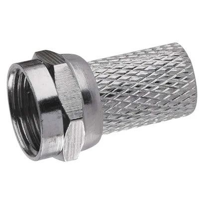 F-konektor vidlice určený k napojení na koaxiální kabel CB 50,100. F-konektor má šroubovací vidlici.