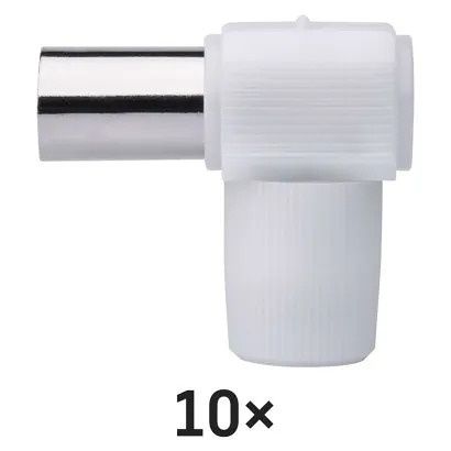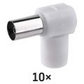 IEC konektor úhlová zásuvka je určen k napojení na koaxiální kabel a má bílou barvu. Prodává se po 10 ks a je plastový.