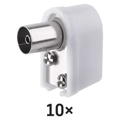 IEC konektor úhlová zásuvka je určen k napojení na koaxiální kabel a má bílou barvu. Prodává se po 10 ks a je plastový.