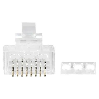 Nestíněný konektor RJ45 8p8c. Pro vodič drát, kulatý kabel. Neskládaný.