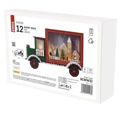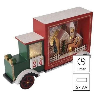 EMOS LED adventní kalendář, dřevěné auto, 20x30,5 cm, 2x AA, vnitřní, teplá bílá, časovač