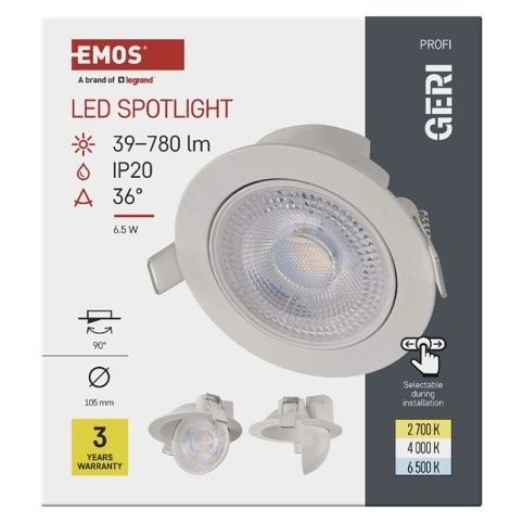 EMOS LED bodové svítidlo GERI 6,5W 780LM IP20 CCT bílá