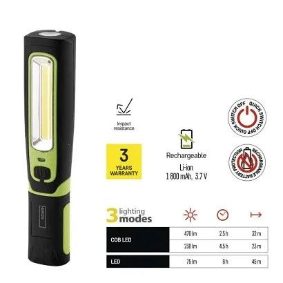 EMOS LED + COB LED nabíjecí svítilna P4532, 470 lm, 1800 mAh