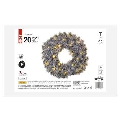 EMOS LED dekorace – adventní věnec, 40 cm, 2x AA, vnitřní, teplá bílá, časovač