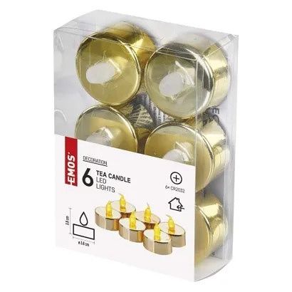 EMOS LED dekorace – čajová svíčka zlatá, CR2032, vnitřní, vintage, 6 ks