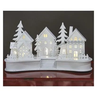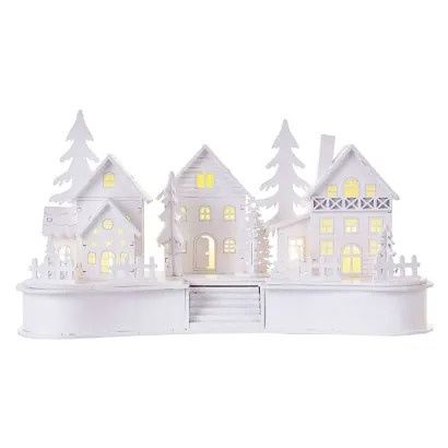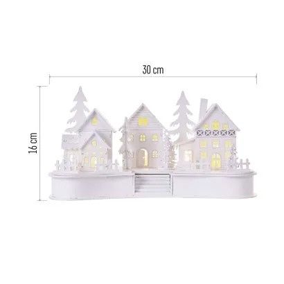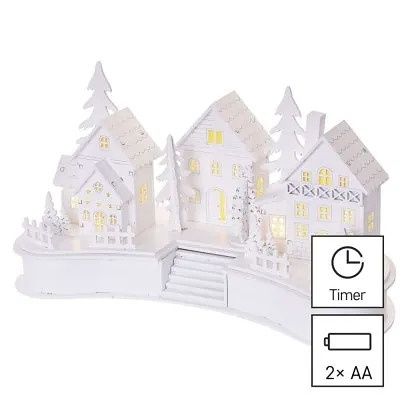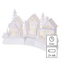 EMOS LED dekorace dřevěná bílá – vesnička, 16 cm, 2x AA, vnitřní, teplá bílá, časovač