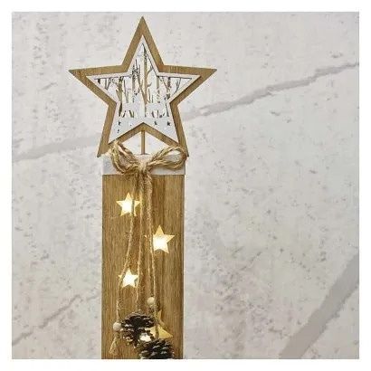 EMOS LED dekorace dřevěná – hvězdy, 48 cm, 2x AA, vnitřní, teplá bílá, časovač