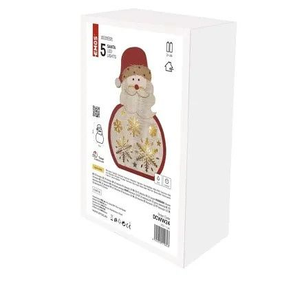 EMOS LED dekorace dřevěná – Santa, 30 cm, 2x AA, vnitřní, teplá bílá, časovač
