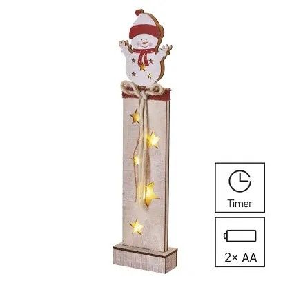 EMOS LED dekorace dřevěná – sněhulák, 46 cm, 2x AA, vnitřní, teplá bílá, časovač