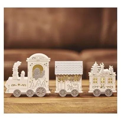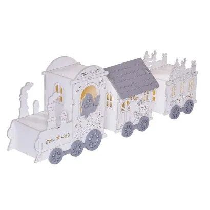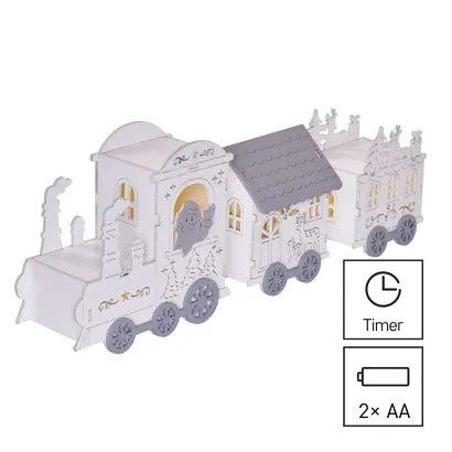EMOS LED dekorace dřevěná – vláček, 2x AA, 14 cm, vnitřní, teplá bílá, časovač