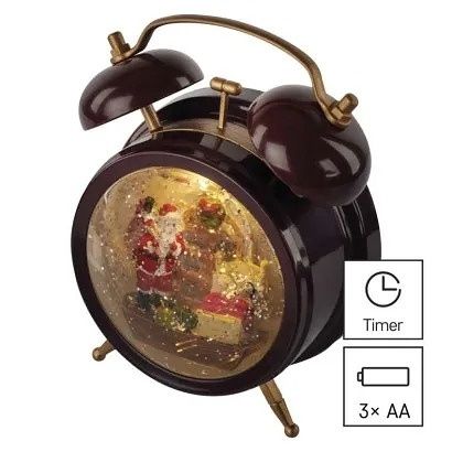EMOS LED dekorace – vánoční sněžítko budík, 19 cm, 3x AA, vnitřní, teplá bílá, časovač