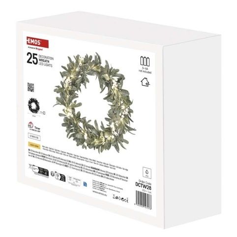 EMOS LED dekorace - věnec jmelí, 3x AA, teplá bílá, časovač