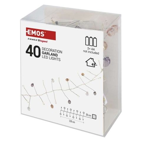 EMOS LED girlanda – perly, 1,2 m, 3x AA, vnitřní, teplá bílá, časovač