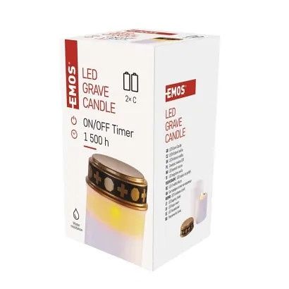 EMOS LED hřbitovní svíčka, 12,5 cm, 2x C, venkovní i vnitřní, vintage, časovač