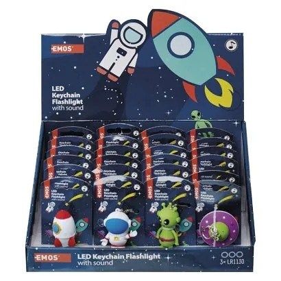 EMOS LED klíčenka – vesmír, se zvukem na LR54, 24 ks, display box