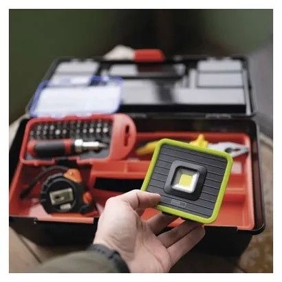 Výhody produktuvyužití v dílně, na zahradě a v domácnostitři režimy svícení (100 %, 50 %, 25 %)výdrž až 17 hodin, slouží i jako powerbanka nárazu a vodě odolné tělozávěsné oko s pojistkou proti vyháknutívýklopný stojánek4 magnety pro přichycení