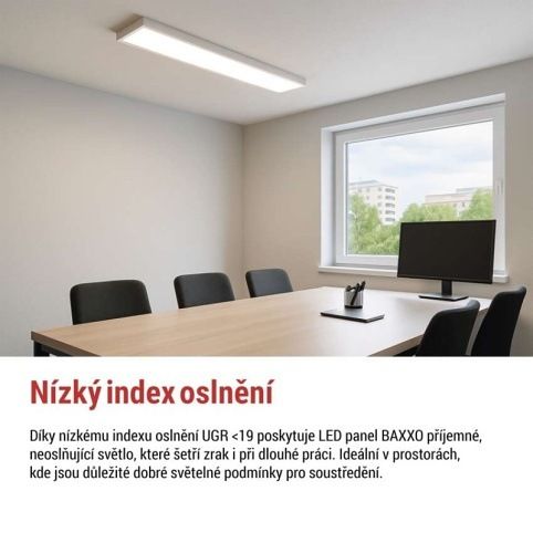 EMOS LED panel BAXXO 30×120, obdélníkový přisazený bílý, 36W, neutrální bílá UGR