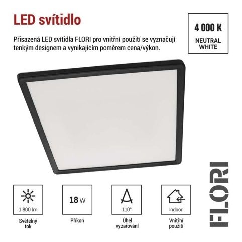 EMOS LED přisazené svítidlo FLORI čtvercové, černé, 18W, neutrální bílá
