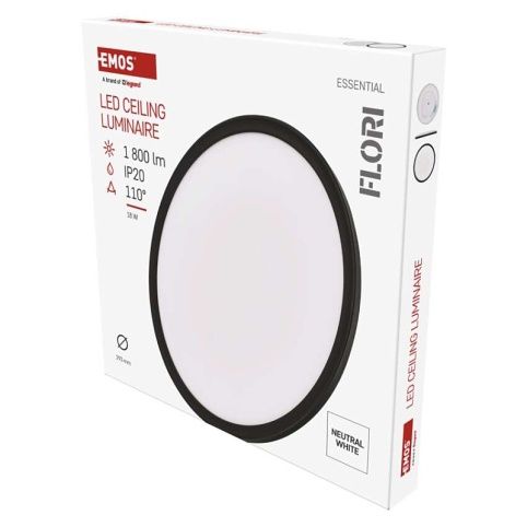 EMOS LED přisazené svítidlo FLORI kruhové, černé, 18W, neutrální bílá
