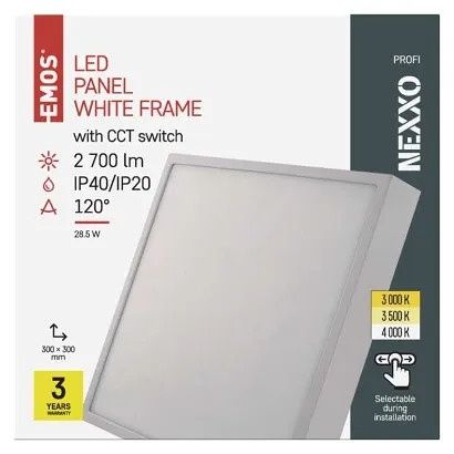 EMOS LED přisazené svítidlo NEXXO, čtvercové, bílé, 28,5W, se změnou CCT