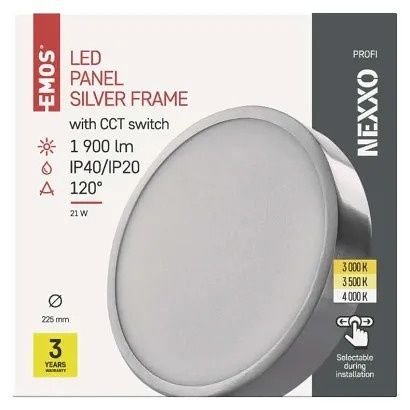 EMOS LED přisazené svítidlo NEXXO, kruhové, stříbrné, 21W, se změnou CCT