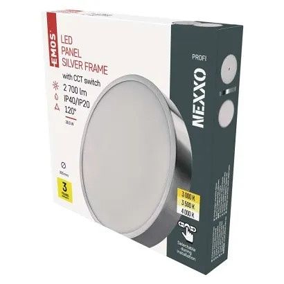 EMOS LED přisazené svítidlo NEXXO, kruhové, stříbrné, 28,5W, se změnou CCT