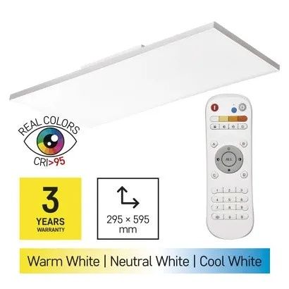 Výhody produktuPomocí ovladače lze svítidlo stmívat a měnit teplotu barev a to v rozsahu 2 700 až 6 500 K.Vysoký index podání barev CRI>95 zajišťuje věrné podání barev. Bezrámečkový design.