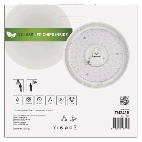 EMOS LED přisazené svítidlo TIVI, B CLASS, kruhové bílé 5,2W, IP44, teplá bílá