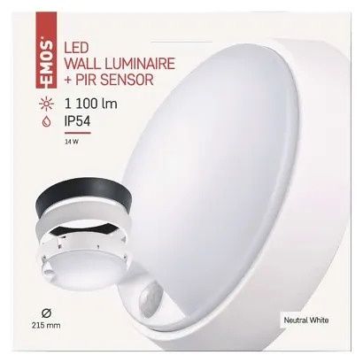 EMOS LED přisazené svítidlo ZURI s pohyb. čidl., kruhové č/b 14W n.b.