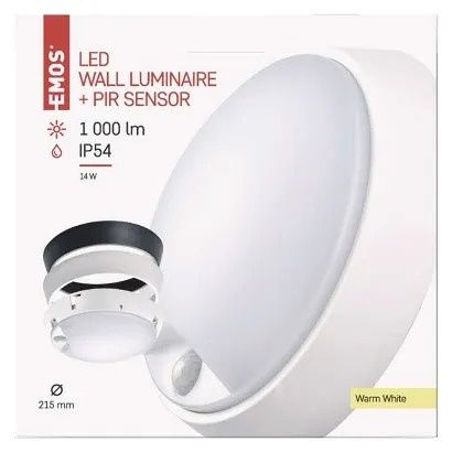 EMOS LED přisazené svítidlo ZURI s pohyb. čidl., kruhové č/b 14W t.b.