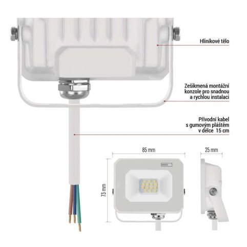 EMOS LED reflektor SIMPO 10 W, bílý, neutrální bílá