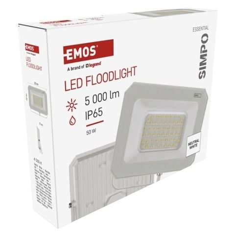 EMOS LED reflektor SIMPO 50W, bílý, IP65, 5000 lm, neutrální bílá