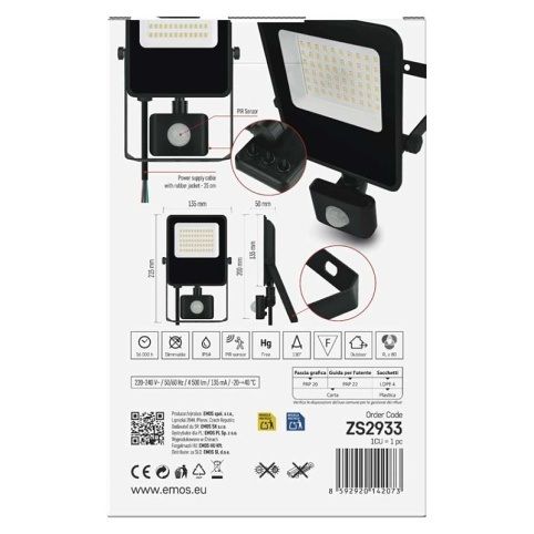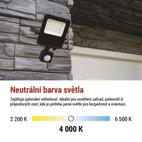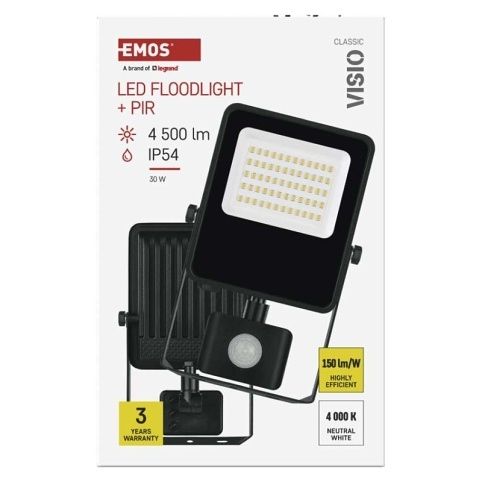 EMOS LED reflektor VISIO s pohybovým čidlem, 30 W, černý, neutrální bílá