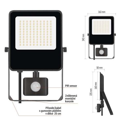 EMOS LED reflektor VISIO s pohybovým čidlem, 50 W, černý, neutrální bílá