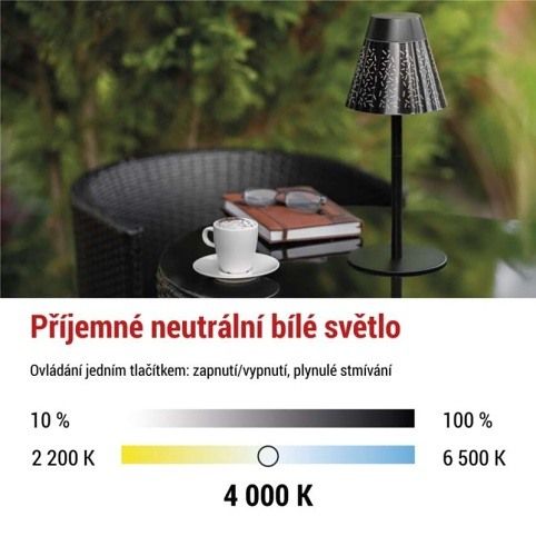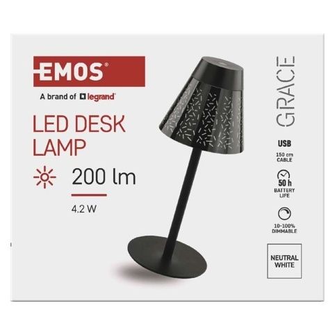 EMOS LED stolní lampa GRACE, nabíjecí, černá