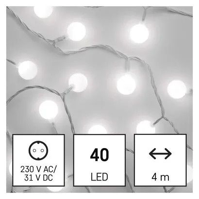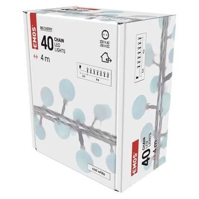 EMOS LED světelný cherry řetěz – kuličky 2,5 cm, 4 m, venkovní i vnitřní, studená bílá, ča