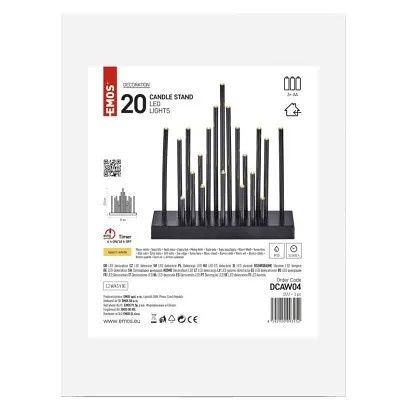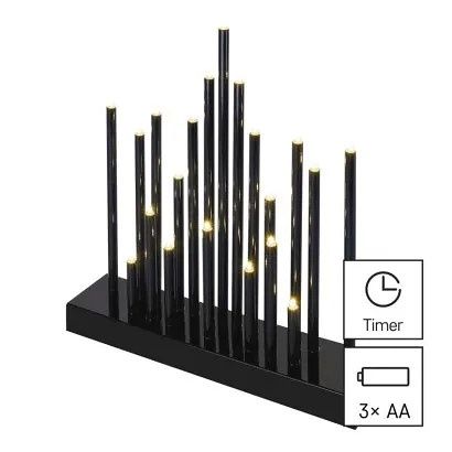 EMOS LED svícen černý, 27,5 cm, 3x AA, vnitřní, teplá bílá, časovač