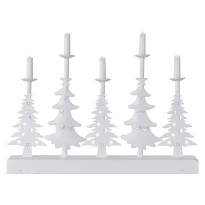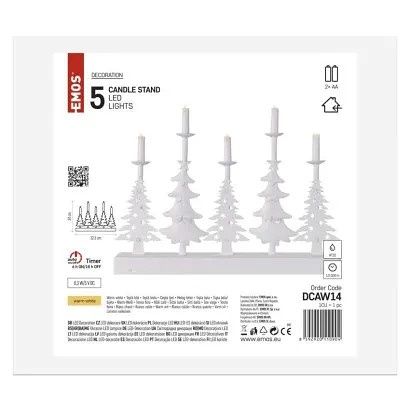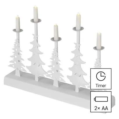EMOS LED svícen – vánoční stromy se svíčkami, 24 cm, 2x AA, vnitřní, teplá bílá, časovač
