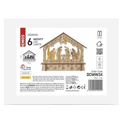 EMOS LED vánoční betlém dřevěný, 15 cm, 2x AA, vnitřní, teplá bílá, časovač