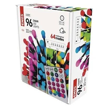 EMOS LED vánoční cherry řetěz – kuličky, 10 m, RGB, ovladač, programy, časovač