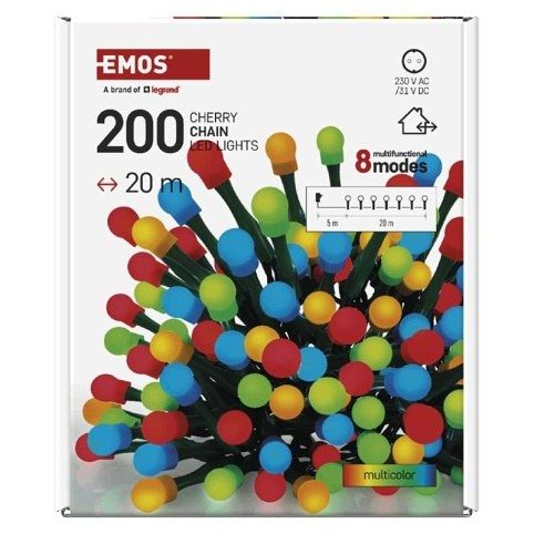 EMOS LED vánoční cherry řetěz – kuličky, 20 m, venkovní i vnitřní, multicolor, programy,ča