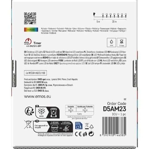 EMOS LED vánoční řetěz, 18 m, venkovní i vnitřní, multicolor, programy, časovač