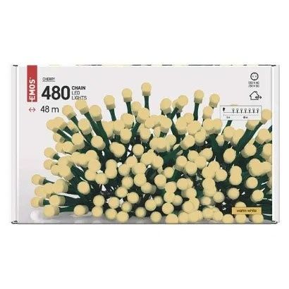 EMOS LED vánoční cherry řetěz – kuličky, 48 m, venkovní i vnitřní, teplá bílá, časovač
