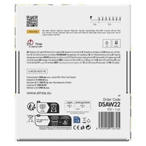 EMOS LED vánoční řetěz, 8 m, venkovní i vnitřní, teplá bílá, časovač