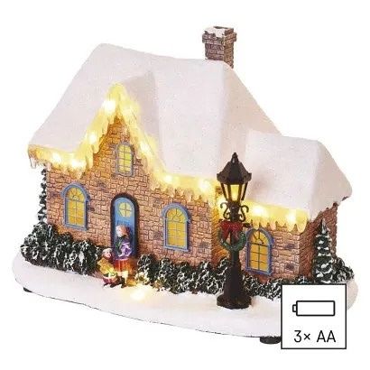 EMOS LED vánoční domek, 20,5 cm, 3x AA, vnitřní, teplá bílá