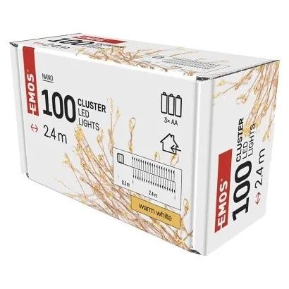 EMOS LED vánoční nano řetěz – ježek, 2,4 m, 3x AA, vnitřní, teplá bílá, časovač