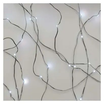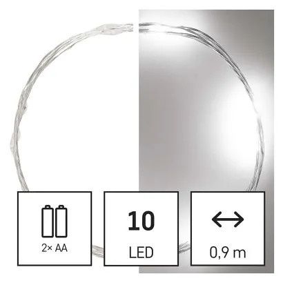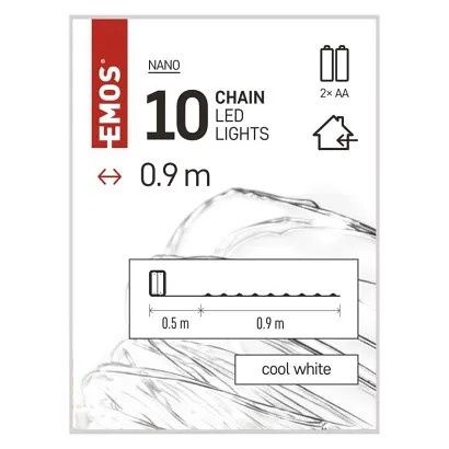 EMOS LED vánoční nano řetěz stříbrný, 0,9 m, 2x AA, vnitřní, studená bílá, časovač
