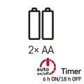 - typ napájení: baterie (2× AA)