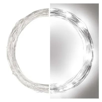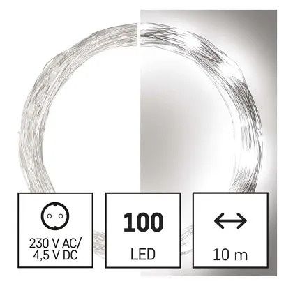 EMOS LED vánoční nano řetěz stříbrný, 10 m, venkovní i vnitřní, studená bílá, časovač