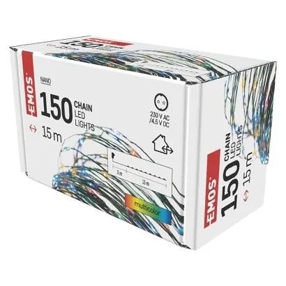 EMOS LED vánoční nano řetěz zelený, 15 m, venkovní i vnitřní, multicolor, časovač
